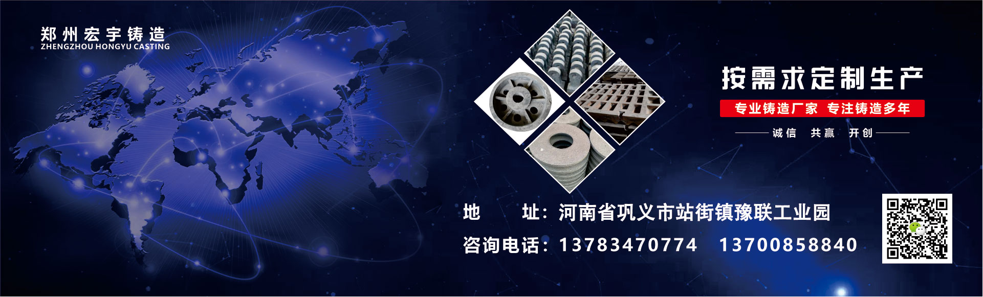 鄭州宏宇鑄造位于河南省鄭州鞏義市是鑄造件廠家,主要生產(chǎn)生鐵機械配件、耐磨襯板、耐磨錘頭、合金耐磨錘頭、制砂機錘頭、鑄鋼件、高鉻合金鑄件、球墨鑄鐵件、消失模工藝鑄件、砂型工藝鑄件等!來樣即可加工。 我們技術力量雄厚、設備齊全,目前有高級技師數(shù)名,技術人員數(shù)十名,能滿足客戶的不同需求,來圖來樣均可生產(chǎn),而且為了確保產(chǎn)品質量進一步得到完善和提高, 確保供貨及時達到客戶的滿意,我們采用優(yōu)質原材料及先進的制造工藝!